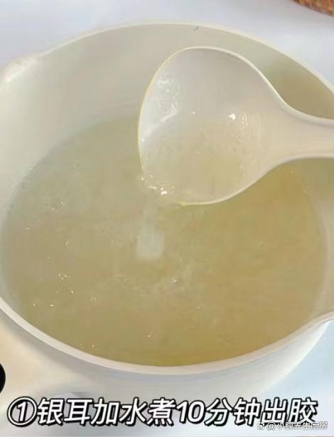 2:雪梨的外皮非常臟,去皮洗凈,從中間對半切開,去掉果核,切成若干小塊,銀耳用冷水泡發一會兒,然后用剪刀剪成若干小朵,這容易讓銀耳快速出膠。 3:另外準備好一個燉鍋,鍋中加上適量清水或純凈水,放入一些銀耳碎,開大火將其煮沸,轉小火燜煮40分鐘,讓銀耳出膠質,中途可以用勺子迅速攪動,避免銀耳出現糊鍋糊底的情況。 4:出膠之后,放入一些老冰糖,放入干蓮子和雪梨,繼續小火燉煮20分鐘,然后放入一些玉米粒,燜煮10分鐘左右。 5:有條件的家庭,還可以放入枸杞子,燜煮一小會兒,關火出鍋,這款玉米粒雪梨銀耳蓮子羹就制作完成了。 玉米粒雪梨銀耳蓮子羹是一款營養滋補的甜湯,非常適合寒冬時期,口感十分甘甜細膩,香甜可口,含有大量的水分和其他營養,補充膠原蛋白,排毒養顏,促進肌膚的再生,延緩肌膚的衰老,氣色越來越好,嗓子更加舒服。 銀耳和幾樣燉一鍋,做法特別簡單,營養易消化,你們喜歡喝這款玉米粒雪梨銀耳蓮子羹嗎?(文中配圖都出自網絡)