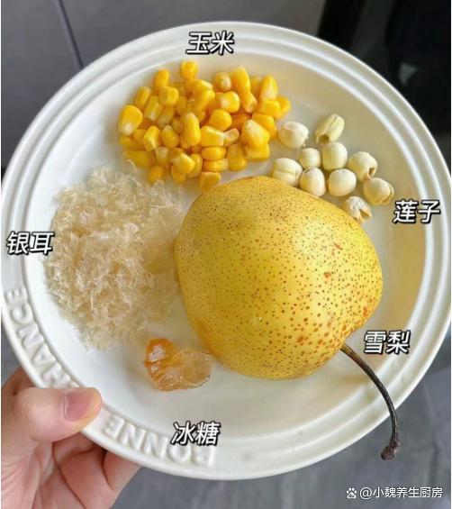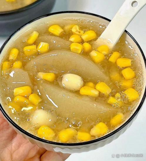 到了11月份的最后幾天,我們已經進入冬天最冷的時候,隨著冷空氣的來襲,各地都開始降溫的模式,南方的天氣也接近零攝氏度,隨著氣溫的降低,這個階段正是人們身體抵抗力最弱的時候,比如流感和感冒會找上門,氣色會非常差,手腳出現冰涼的情況。冬天特別寒冷,女性朋友非常容易貧血,工作的時候沒有勁,臉色非常蒼白,我們不能忽視了女性朋友的身體健康,平常要多吃水果和肉類,平常多喝一些湯湯水水,舒緩我們的腸胃,調理氣色,還可以增強自身的抵抗力。今天準備用玉米粒,雪梨,銀耳和蓮子制作一款甜湯——玉米粒雪梨銀耳蓮子羹,喝起來特別甘甜,老少皆宜,冬天記得多給家里人做一做。冬季,女性要多喝“這湯”,甘甜滋補,營養全面,臉色更加紅潤!  【玉米粒雪梨銀耳蓮子羹的正確做法】 食材清單:選購新鮮雪梨1-2個(可以根據自己家里人口來決定,雪梨要選擇外皮光滑,掂一掂有分量感,這樣的雪梨水分非常足,生吃和煮熟后都可以食用),新鮮玉米粒50克(玉米粒是玉米剝下來的,玉米粒非常清甜,可以用來榨汁或做成許多美食),干蓮子一小把,選購一朵銀耳(銀耳又叫白木耳,是高營養的白色菌類,稱為天然的“美容方”,對于我們的皮膚和氣色有好處,尤其是女性朋友要多吃它),冷水和純凈水少許,老冰糖20克,其他。