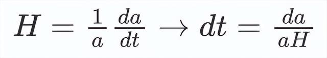其中a是今天的比例因子,它等于1。我們知道,哈勃常數是星系退行速度與距離的比值,但在這里,我們將使用的是根據比例因子定義的哈勃常數: