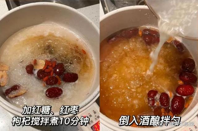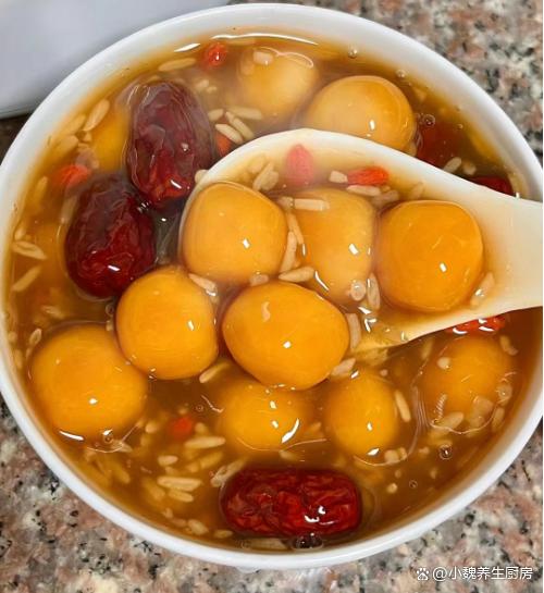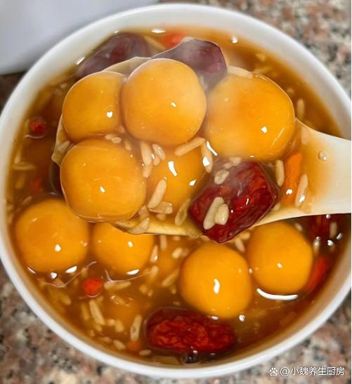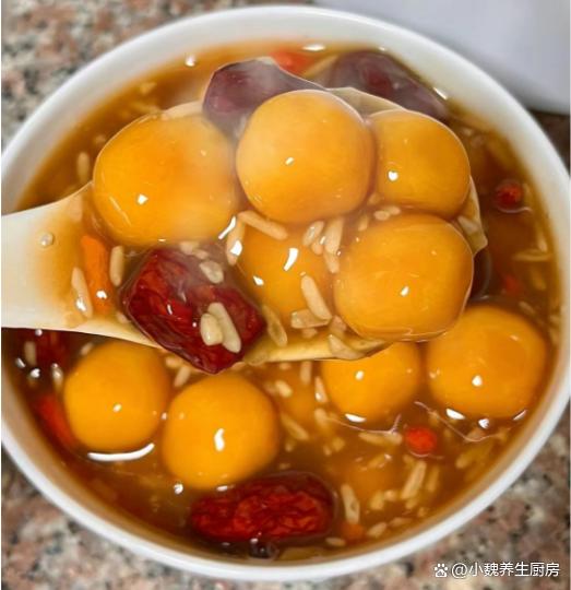 小雪節(jié)氣到來了,寒冬的冬天非常陰冷潮濕,早上都是霧氣蒙蒙的,晚上還非常陰冷,由于天氣變冷了,氣色會越來越差,手腳出現冰涼的情況,女性還容易出現貧血。寒冬到了,早餐需要補充能量,才能正常生活和工作,不能不吃早餐,一日三餐也要規(guī)律一點。武漢是早餐之都,早餐每天都不重樣,吃面條和包子吃膩了,不如給家里人嘗嘗這款羹湯——酒釀南瓜圓子羹,主要采用南瓜,糯米粉和酒釀制作而成,喝起來很甘甜,早食早受益。冬天轉涼,早餐要多吃“它”,暖胃養(yǎng)胃,補充氣血,增強免疫力。  【酒釀南瓜圓子羹的正確做法】 食材明細:選購半塊奶油南瓜(奶油南瓜是南瓜的品種之一,南瓜的瓜肉為金黃色,富含有大量的膳食纖維和微量元素,吃起來口感甜美,軟糯可口,可以烹飪成各種美食),糯米粉150克左右,酒釀50克(酒釀是湖北孝感的特產,有著濃郁的酒香味,喝起來很滿足),紅糖幾塊,枸杞子12克左右,銀耳碎40克,白糖少許,溫水少許,少許水淀粉,其他。 正確制作順序: 1:提前準備好奶油南瓜,糯米粉和枸杞子,先把奶油南瓜削掉外皮,用勺子刮掉瓜瓤,反復清洗干凈,切成若干小塊。 2:南瓜塊放在碗中,鍋中煮一些清水,上鍋蒸10分鐘左右,南瓜塊放在碗中,用勺子壓碎成泥,放在碗中備用。 3:加上糯米粉,勾兌少許溫水,加上少許白糖,用筷子攪拌均勻,用手反復揉搓,讓表面揉成光滑的面團。 4:先把南瓜面團搓成長條,揪成一個小劑子,全部揉搓成小圓子,全部放在盤中,鍋中煮一些清水,倒入南瓜小圓子,讓其煮幾分鐘,撈出過涼水浸泡,控干表面水分。 5:鍋中繼續(xù)煮一些清水,放入一些銀耳碎,將銀耳快速煮出膠質,放入一些紅棗和紅糖,用勺子攪拌均勻。 6:繼續(xù)小火燜煮10分鐘,倒入一些酒釀煮一會兒,下入之前煮好的南瓜湯圓,最后放入枸杞子,燜煮一小會兒。 7:關火出鍋,這道酒釀南瓜圓子羹就烹飪完成了,喝起來十分甘甜,南瓜圓子個個都軟糯可口,喝起來很舒服。 酒釀南瓜圓子羹是一款甘甜的甜品,主要材料有酒釀、南瓜和糯米粉等食材制作而成,喝起來十分甘甜,醇香入味,南瓜小圓子個個都非常軟糯,能夠補充氣血,美容養(yǎng)顏,氣色越來越好,早食早受益。