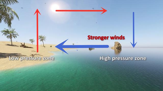 更高的整體溫度導致更極端的天氣,這是如何發生的?當我們說極端天氣造成破壞時,它意味著它會賦予能量。在物理學中,我們可以簡單地將功寫為動能的變化,也就是說需要能量才能造成任何類型的天氣破壞。例如,風作用于地球并引起風暴或龍卷風就需要能量,這種能量從哪里來,簡短的回答是太陽。 就像熱氣球一樣熱空氣會上升,隨著來自陸地的熱空氣上升形成云,來自海洋的冷空氣會進來填補空隙,于是就形成了風。因為熱空氣密度低,我們得到一個低壓區,而海上的冷空氣具有較高的壓力。空氣從高壓流向低壓,這會產生風,如果壓差非常大,風可能會更強。為了完成循環,在大氣中上升的熱空氣最終被推到海中,在那里它再次冷卻下來并繼續完成循環。