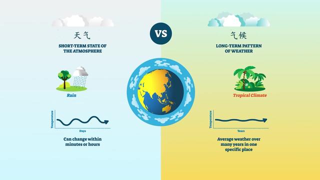地球上保留的能量增加必須有一個去處,這造成了許多災難的發生。更多的水從地球表面蒸發,導致世界某些地區出現嚴重的干旱,而另一些地區則出現更嚴重的降雨。此外,它還增加了臺風包含的能量,對沿海地區造成更大的破壞。溫暖的環境也造成了兩極海冰的融化,導致海平面上升。 什么是氣候為了討論氣候,我們應該就氣候的含義達成一致。僅僅因為今年夏天比去年夏天更熱,并不意味著氣候正在變暖。談論氣候與天氣之間的區別在于持續時間:當我們談論天氣變化時,可能是幾分鐘、幾小時、幾天甚至幾個月,短期天氣并沒有告訴我們關于地球氣候總體趨勢的信息;氣候用是幾十年來衡量的,通常是30多年,它描述了在特定地方很長一段時間內的總體趨勢。