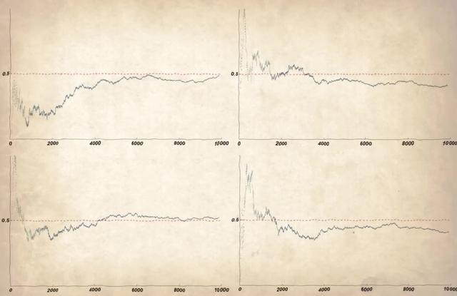 如果那天你在蒙特卡洛賭場,你會賭紅色還是黑色?在本文中,我們將看到賭徒們到底哪里出了問題,以及他們如何以正確的思維避免驚人的損失。首先,讓我們從拋硬幣開始講起。 我們都知道,當我們拋硬幣的時候,它會有50%的機會朝上,同樣也會有50%的機會朝下。現在,我拋出硬幣,顯示的是正面,我又連續拋出3次硬幣,也都是正面朝上。四次正面朝上的幾率是十六分之一或6.25%,如果再一次拋出硬幣,很多人可能會認為這次出現反面的機會更高。如果是這樣想,那就落入了賭徒謬誤,他們認為獨立的過去事件會影響同一隨機實驗中獨立的未來事件。 但這是嚴重錯誤的,這枚硬幣不會記憶住最后幾次的翻轉,在下一次翻轉中獲得正面或反面的機會仍然是二分之一。拋硬幣是所謂統計獨立的,每個事件都獨立于之前和未來的事件。我們傾向于認為機會是自我糾正的,或者必須有一個宇宙平衡,所以才會落入賭徒謬論。 事實上,這種宇宙平衡的信念并不像聽起來的那么愚蠢。如果我們拋硬幣的次數足夠多,我們就會開始看到一些非常有趣的東西。1939年,一位名叫J.E Kerrich的南非數學家去歐洲旅行,但最終被關進了丹麥的監獄,出于好奇或純粹的無聊,他將一枚硬幣拋了一萬次并記錄了它落在正面的次數。結果顯示,拋硬幣的次數越多,正面的相對頻率就越來越接近50%。