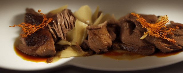 蟲草燉老鴨是一道具有滋補功效的美味佳肴。以下是制作蟲草燉老鴨的簡單做法:所需食材:- 蟲草花 10 克- 老鴨 1 只- 姜片 5 片- 蔥段 2 段- 料酒 2 湯匙- 鹽 適量- 白胡椒粉 適量- 雞精 適量- 清水 適量步驟:1. 將蟲草花用溫水浸泡10分鐘,然后用清水洗凈備用。2. 老鴨洗凈,剁成塊狀,用開水焯水去腥,然后瀝干備用。3. 熱鍋加入適量食用油,將姜片和蔥段爆炒出香味。4. 將老鴨塊加入鍋中煎至表面微黃。5. 加入料酒翻煮一下,去腥味。6. 將蟲草花加入鍋中煮沸,然后將焯水過的老鴨塊放入鍋中。7. 加入適量清水,煮沸后轉(zhuǎn)小火慢燉2個小時,直至老鴨熟爛,入味。8. 最后加入適量的鹽、白胡椒粉和雞精調(diào)味即可。蟲草燉老鴨香氣濃郁,老鴨肉鮮嫩,營養(yǎng)豐富。它既可以作為正餐搭配米飯食用,也可以作為滋補湯品享用。