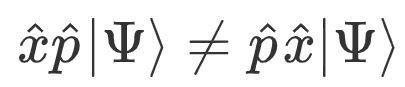 在量子力學中,進行測量是一件非常奇怪的事,它會使波函數坍縮。但是,更復雜的是對其進行兩次測量,因為這與測量順序有關。在經典力學中,如果我們要測量一顆球的位置和動量,無論先測量哪個屬性結果都是一樣的。但在量子力學中,因為我們對量子系統的測量會改變波函數,在這之后再進行測量實際上是在測量不同的波函數。所以,先測量電子的位置再測量動量,并不等于先測量動量再測量位置,我們把這寫作: