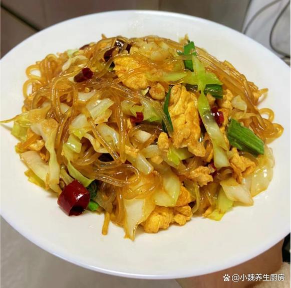 轉眼之間,已經進入到寒冷的冬天,11月份之后,我們會感覺冬天的氣息,氣溫出現驟降,許多城市都開始下雪了,雖然武漢沒有下雪,但是也感覺冷起來了,我們要多穿一些衣服御寒。到了冬天,最怕身體著涼和胃口不好。冬天需要進補,只有強壯的身體,才能度過寒冷的冬天,要保證足夠的營養攝入,不能總吃吃豬肉或牛肉,要保證各種營養的吸收。今天為小伙伴推薦一道適合冬天食用的菜肴——包菜雞蛋炒粉絲,做法簡單,好吃不貴,比豬肉更受歡迎。11月,寧可少吃肉,也要多吃這菜,營養又美味,老公孩子都愛吃。  【包菜雞蛋炒粉絲的具體做法】 食材清單:選購包菜250克左右(或者選擇卷心菜,包菜的價格特別便宜,屬于低脂低卡的蔬菜之一,口感非常清甜,可以有許多種吃法,怎么吃都不擔心長膘),干辣椒幾個,紅薯粉絲120克(紅薯粉絲是用紅薯經過多重工藝,加工而成的粉絲,口感很有彈性,我們家孩子超愛吃),新鮮青蒜苗兩根,若干個大蒜頭,植物油少許,土雞蛋2到3個,白醋半勺,少許水淀粉,溫水和冷水少許,食鹽少許,生抽少許,雞精半勺,一丟丟胡椒粉,其他佐料。 正確制作順序: 第一步:提前準備好包菜,紅薯粉絲和雞蛋,先把包菜的根部切掉,葉子用清水洗干凈,切成一些老莖部位,改刀切成若干細絲,備用。 來源: www.ws46.com 第二步:將紅薯粉絲用冷水沖洗干凈,用溫水泡發,或者下鍋煮一小會兒,撈出放涼水浸泡,瀝干水分,加上少許食用油,將其攪拌均勻,備用。 第三步:干辣椒洗凈切成細段,大蒜頭剝掉外皮,切成蒜末,大蒜苗去掉黃葉,反復清洗干凈,切成若干小段。 第四步:碗中打入幾個土雞蛋,用筷子攪拌均勻,調入一小勺白醋去腥,加上適量水淀粉,讓雞蛋口感更好,看起來非常蓬松一些。 第五步:鍋底提前預熱,加上植物油燒熱,蛋液淋入鍋中,讓雞蛋快速凝固,用鍋鏟將其炒散,裝盤備用。 第六步:鍋底繼續加上油(也可以加上豬油),加上蒜末和干辣椒,調到大火快速爆炒,倒入包菜絲炒至斷生。 第七步:放入紅薯粉絲和雞蛋塊,加上少許老抽和生抽,加上半勺蠔油,加上雞精和味精半勺,調入少許食鹽調味。 第八步:放入大蒜苗葉子,用鍋鏟翻炒2到3分鐘,關火裝盤,這道包菜雞蛋炒粉絲就可以開吃了,一出鍋就被搶光了。 包菜雞蛋炒粉絲是一款十分下飯的菜肴,主要選用了紅薯粉絲,包菜和雞蛋制作而成,從菜肴的色澤看上去很好看,粉絲非常有彈性,雞蛋鮮嫩入味,幾種食材炒一盤,吃起來十分解饞,我們家老公和孩子都愛吃。小伙伴們,你們是否喜歡吃這道包菜雞蛋炒粉絲呢?(文中配圖都出自網絡)