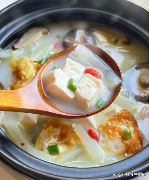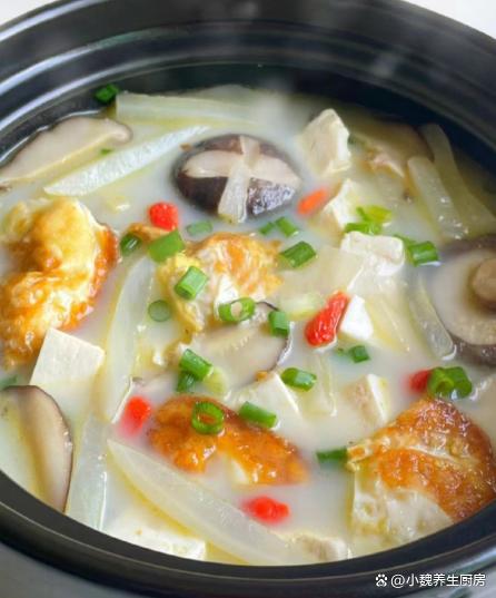 11月份之后,我們進入到寒冬模式,我們馬上要迎來小雪節氣,后面的氣候會更加惡劣,隨著冷空氣的南下,許多南方地區也開始降溫。由于北方有暖氣,雖然氣溫低一些,但是屋子里非常暖和,南方城市沒有暖氣,加上許多處于沿海和沿江城市,空氣非常潮濕,氣候呈現濕冷的氣候特點,讓很多南方人非常苦惱。想要抵抗住寒冷的冬天,一定要加強鍛煉,平常也要注重養生,平常少吃太過辛辣的食物,多喝熱氣騰騰的鮮湯,幫助營養更快消化和吸收,對身體有許多幫助。許多人第一次喝這款蘿卜絲香菇煎蛋豆腐湯,快一點跟著小編來看一看吧。“冬季多喝湯,來年不會慌”,11月多喝這湯,暖胃驅寒,增強免疫。