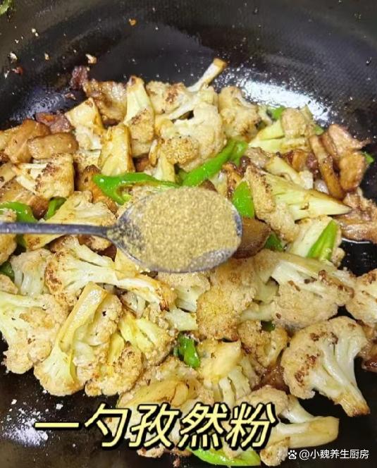 第五步:鍋底調入一些植物油,加上一些姜蒜和花椒,倒入腌制好的五花肉,讓油脂都炒出啦,加上一勺豆瓣醬,加上半勺老抽上色,翻炒均勻。 第六步:將水分慢慢炒干,倒入提前焯水的花草,將其炒至斷生,放入一些青椒絲,加上半勺食鹽,加上半勺白糖,加上一勺孜然粉,調入生抽和蠔油少許,用鍋鏟快速翻炒均勻。 摘自: www.ws46.com 第七步:裝盤盛出,這道青椒花菜炒五花肉就烹飪完成了。 青椒花菜炒五花肉是一款葷素搭配的開胃小菜,主要選用花菜,青椒和五花肉搭配而成,肉香味濃郁,花菜吃起來清甜脆口,爽口開胃,吃起來很有胃口,早食早受益。 你們是否吃過這道青椒花菜炒五花肉嗎?(上述配圖都出自網絡)