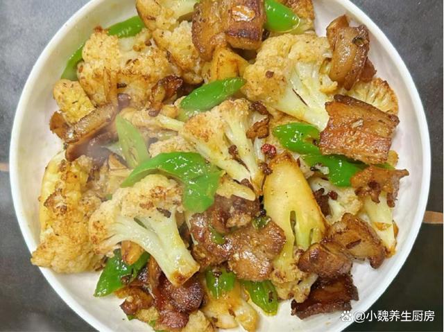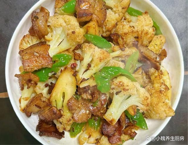 進入今年11月份中期,距離小雪節氣越來越重要,現在處于初冬時節,寒冷是冬季的特點之一,氣溫非常低,空氣十分干燥,身體各項功能降低,胃口會越來越差。寒冬之后,如果家里孩子非常挑食,可以給家里人嘗嘗這道菜——青椒花菜炒五花肉,菜色非常好看,葷素搭配一鍋出,不懂吃可惜了。寒冬來臨,多給家人吃這菜,葷素搭配,營養解饞,出鍋后滿屋香。  【青椒花菜炒五花肉的食譜解析】 食材明細:選購若干個青椒(或者選擇杭椒,既可以起到配色和刺激味蕾的作用),挑選新鮮花菜300克(花菜屬于十字花科的一種蔬菜,花菜吃起來十分清脆,可以搭配許多食材炒一盤,葷素一鍋吃,吃起來非常開胃解饞),選購優質五花肉半斤(五花肉是豬肉的部位之一,價格適中,肉質肥而不膩,可以搭配各種食材是絕配),豆瓣醬一勺,食用油少許,若干片生姜,大蒜頭若干個,花椒幾個,半勺老抽,生抽少許,半勺白糖,冷水少許,雞精半勺,食鹽若干,其他調味品。正確制作順序:第一步:提前選購好花菜,青椒和五花肉,先把青椒去掉蒂,洗凈斜切成細絲,大蒜頭去掉蒜衣,切成一些蒜末,生姜切成細絲,備用。第二步:將花菜的老莖切掉,花菜切成若干小朵,全部放入大一些的容器里,加上冷水沒過花菜,加上幾勺食鹽,將其浸泡一會兒,洗凈控干水分,這樣能夠去掉花菜的雜質,備用。第三步:將五花肉徹底洗干凈,切成一些薄片,五花肉用料酒去腥,撒上少許食鹽,把五花肉腌制半刻鐘,準備好一些配菜,開始烹飪這道青椒花菜炒五花肉。
