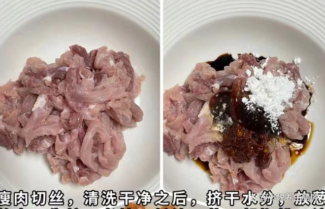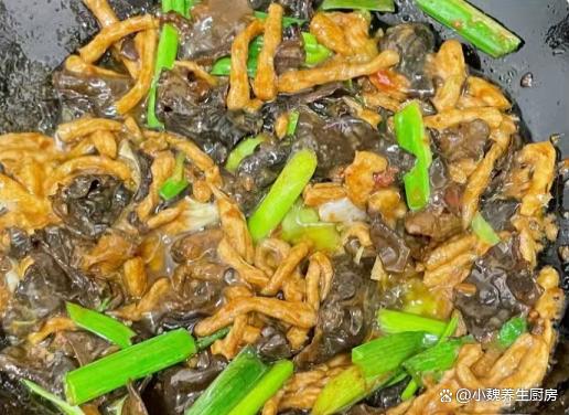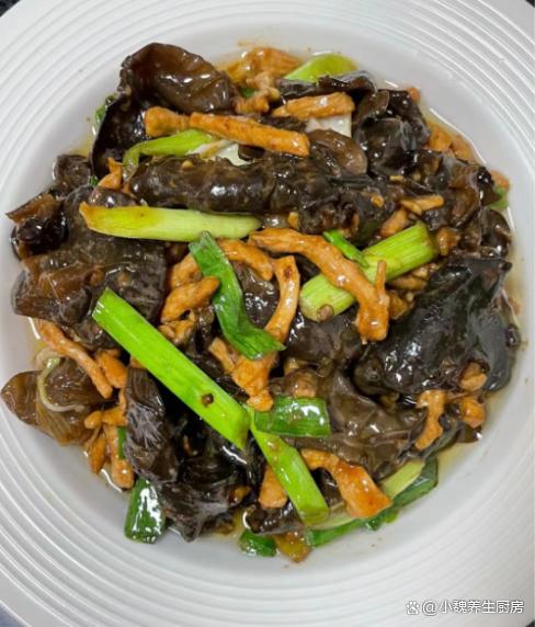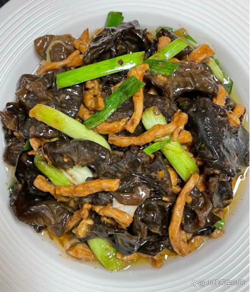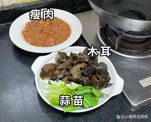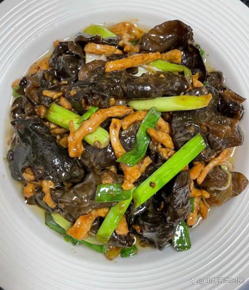 寒冬將至,到了十一月的中旬,北方已經連續下雪了,受冷空氣的影響,南方也開始降溫了,這幾天只能穿保暖內衣了,防止被凍感冒了。最近天氣一直下雨,感覺嗓子特別干燥,胃口會特別差。最近老公胃口很差,今天準備用蒜苗,木耳和豬肉制作一道美味菜肴——蒜苗木耳炒瘦肉絲,蒜香味濃郁,肉絲十分嫩滑,吃起來非常解饞,堪稱米飯的終極殺手。冬季,常給家人吃“這道菜”,簡單易學,美味解饞,出鍋滿屋香。  【蒜苗木耳炒瘦肉絲的詳細食譜】 食材清單:挑選新鮮青蒜苗2到3根(蒜苗是許多家庭餐桌上的配菜,湖北人做什么菜都放它,蒜苗的葉子聞起來很香,幫助刺激食欲,搭配肉類是絕配),選購黑木耳35克左右(黑木耳屬于優質的黑色菌類,被人稱為“素中之王”,鐵元素含量豐富,能夠促進血紅蛋白生成,還能幫助疏通腸道),生姜若干片,新鮮前腿肉350克,適量植物油,大蒜頭若干瓣,原味醬油少許,生抽和蠔油若干,白糖和食鹽若干,溫水少許,雞精和味精少許,其他調味品。 具體制作做法: 第一:提前選購好蒜苗,黑木耳和前腿肉,黑木耳放入碗里,加上適量溫水泡發開,去掉黑色的根部,洗凈后焯燙處理,切成若干小塊,控干表面的水分。第二:先把新鮮蒜苗的葉子掐掉,切掉根須洗干凈,斜切成若干小段,大蒜全部剝掉外衣,剁成一些細末,備用。第三:小米辣洗凈切成小段,生姜切成細絲,前腿肉要徹底洗凈,肥肉切成長條細絲,瘦肉切成若干細絲,放在器皿中,備用。 第四:瘦肉絲放在器皿中,調入一丟丟料酒,加上蔥姜水,加上生抽和蠔油,滴入香油,加上食鹽和生粉,快速抓拌一會兒,肉絲充分腌制入味。