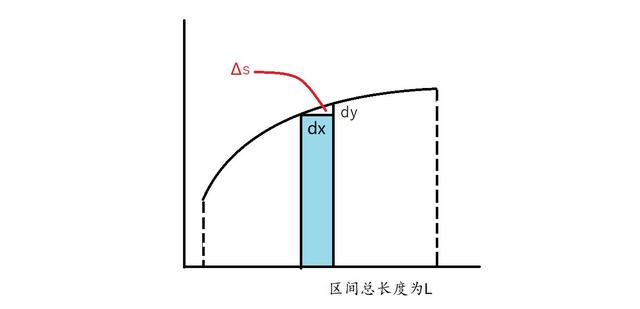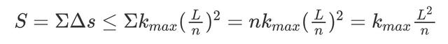 如果只是用上述的語言進行描述,那么有些人可能還有點懷疑,那么下面我們就用一個例子來給大家一個直觀的感受。如上圖所示,誤差面積為三角形Δs=dx·dy。我們令dy=k·dx,其中k為斜率,那么Δs=k·dx。因為dx=L/n,所以Δs=k·(L/n)。那么,把n個小誤差累加起來,我們就得到: