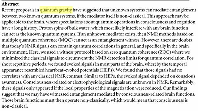 最近一篇論文聲稱發現了非經典大腦功能的證據,這里的非經典指的是量子力學。很多人對這篇論文感興趣是因為它的摘要以量子引力相關的東西為開頭。