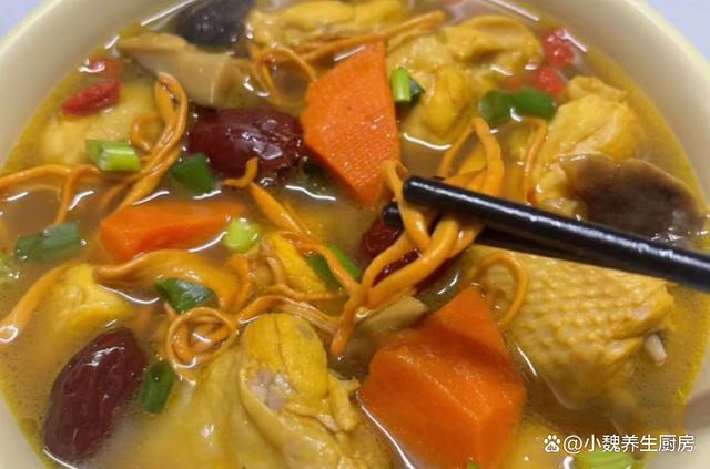 進入11月份以后,隨著氣候的不斷變化,寒冷的冬天要來臨了,由于早晚的溫差特別大,氣色非常差,手腳出現著涼的情況,一整天都沒有勁。對于許多南方人而言,很難度過寒冬,必須要從飲食上改善,多喝一些鮮美的湯品,比如說雞湯鴨湯。最近老公非常忙,有時間就會犒勞他,每周都會制作各種鮮湯,比如說這款胡蘿卜蟲草花紅棗燉雞湯,雞湯特別鮮美,滋補養人,對身體有好處。冬天轉涼,常給家人喝這湯,湯鮮味美,營養全面,身體更強壯。
