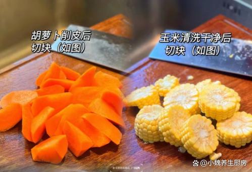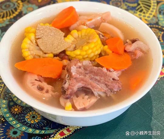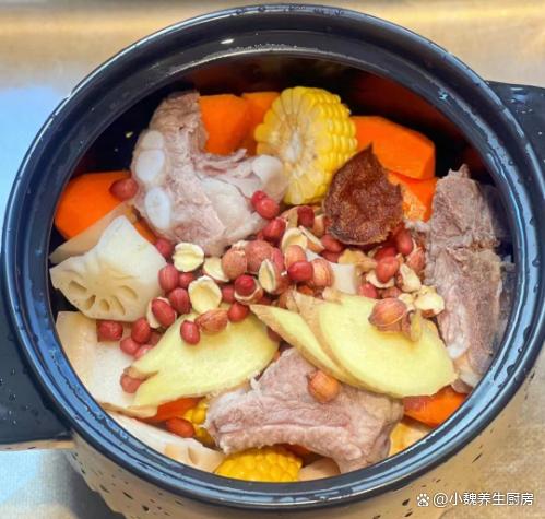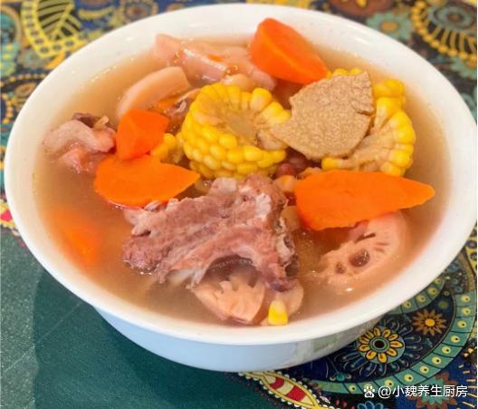 進入十一月以后,從涼爽的秋季,轉入到寒冷的冬季,我們要經歷氣溫大跳水,感受季節的更替。時間過得很快,明日就要迎來立冬節氣,立冬是冬天的開始,是24節氣的第19個節氣,標志著寒冷的冬天要來臨了。進入冬天之后,早上天亮非常早,晚上黑得也很早,早上霧氣蒙蒙,晚上陰冷潮濕,一陣陣陰風來襲,讓臉部非常干枯,身體處于虛弱的狀態,我們平常要注意保暖,飲食也需要做出一些變化和調整,適量給身體冬補,才能順利度過冬天。冬天是喝湯的好時機,天氣出現降溫,需要暖和和的鮮湯,幫助暖身健脾,補充許多能量,對身體有好處。今天推薦一款家常鮮湯——胡蘿卜蓮藕陳皮排骨湯,湯汁特別好喝,不懂吃怪可惜了。明日立冬,有錢沒錢,常給家人喝這湯,暖胃健脾,增強抵抗力。  【胡蘿卜蓮藕陳皮排骨湯的詳細食譜】 食材明細:選購優質陳皮15克左右,選購胡蘿卜幾根(胡蘿卜是一種色澤好看的蔬菜,秋冬最受歡迎,營養價值高,平常可以炒食或煲湯),300克洪湖粉藕(洪湖盛產蓮藕,蓮藕湯喝起來非常甘甜,讓人回味無窮,秋冬多喝藕湯,讓腸胃很舒服,增強身體免疫力),紅蓮子20克,紅皮花生米25克左右,選購排骨400克左右,冷水和溫開水足量,大蔥半根,幾個蜜棗,少許食鹽,一丟丟白胡椒粉,玉米一根,其他佐料。 正確做法: