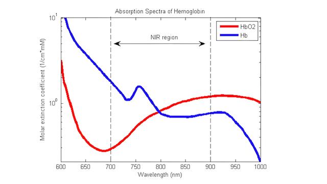 如上圖所示,這是含氧血紅蛋白和脫氧血紅蛋白的吸收光譜。橫坐標(biāo)代表的是光的波長,縱坐標(biāo)代表的是摩爾吸光系數(shù),也就是對光的吸收能力。紅色線代表的是含氧血紅蛋白,而藍(lán)色線代表脫氧血紅蛋白。我們可以看到,在最左側(cè)紅光的區(qū)域,含氧血紅蛋白吸收這種波長的能力比脫氧血紅蛋白弱。但隨著波長的增長,到了最右側(cè)紅外線時,情況發(fā)生了翻轉(zhuǎn),含氧血紅蛋白實(shí)際上吸收的光比脫氧血紅蛋白多一點(diǎn)。 但是我們應(yīng)該知道,這些設(shè)備都不是完美的。在某些情況下,他們可能會給出錯誤的讀數(shù),比如一氧化碳中毒的情況。對于血氧儀來說,攜帶一氧化碳的血紅蛋白與攜帶氧氣的血紅蛋白相同。 |
