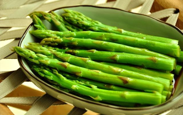 三、蘆筍 蘆筍是一種低熱量、高營養的蔬菜,含有豐富的葉酸、維生素A、維生素C、膳食纖維、礦物質等營養成分。蘆筍還含有一種叫做“蘆丁”的營養物質,具有很好的抗氧化作用,能夠幫助人體抵抗自由基的侵害。此外,蘆筍還具有很好的潤燥養肺、通腸排便的作用。 推薦菜品:清炒蘆筍 材料:蘆筍、蒜末、鹽、食用油