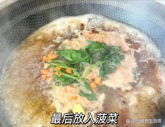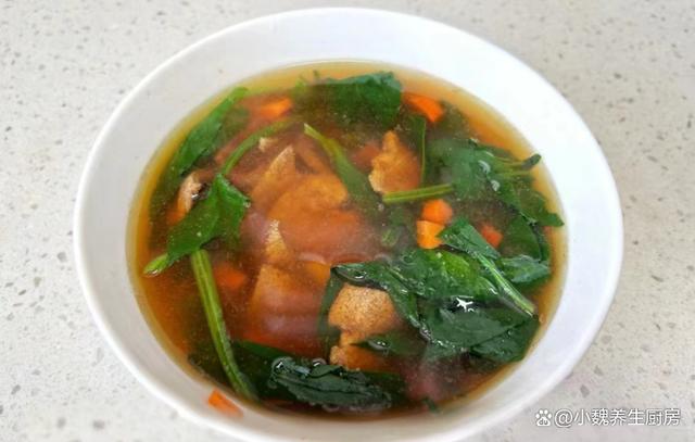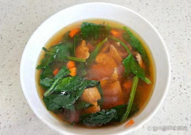 深秋時節(jié),已經(jīng)到了秋季的尾聲,馬上要迎來11月,雖然非常忙碌,但是也要照顧好自己,工作的同時要照顧好自己,尤其是要注意養(yǎng)生。秋冬季節(jié)交替的時候,天氣逐漸變冷,溫度持續(xù)走低,這個時候需要攝入大量的營養(yǎng),才能讓身體更加強壯,增強身體的免疫力。秋冬是不錯的養(yǎng)生期,飲食上要注意調(diào)理脾胃,多喝一些暖和和的羹湯,少吃太辛辣的食物。今天為網(wǎng)友們推薦一款家常鮮湯——胡蘿卜菠菜豬肝湯,主要選用菠菜,胡蘿卜和豬肝制作而成,湯汁營養(yǎng)很鮮美,補充多種營養(yǎng)物質(zhì),好處多多。許多人沒有喝過這款胡蘿卜菠菜豬肝湯,到底應該如何制作呢?快一點跟著小編看一看吧。“秋冬一碗湯,身體更安康”,平常多喝這湯,補足營養(yǎng),迎接冬天。  【胡蘿卜菠菜豬肝湯的食譜解析】 食材明細:挑選新鮮嫩菠菜120克(菠菜是秋末剛剛上市的蔬菜,現(xiàn)在吃正當季,菠菜被稱為補鈣高手,葉片含量豐富鈣質(zhì),維生素和鐵元素含量高,菠菜湯非常清淡,營養(yǎng)好喝又解膩,平常給孩子多喝它),選購半根胡蘿卜,挑選新鮮豬肝一大塊(豬肝是高鐵的食材,豬肝的食用方法很多,但是處理起來很麻煩),若干片生姜,香蔥少許,食鹽和胡椒粉若干,面粉幾勺,冷水少許,食用油少許,玉米淀粉少許,其他調(diào)味品。 正確制作順序: 第一步:提前選購好胡蘿卜,菠菜和豬肝,先把豬骨放在容器里,加上幾勺面粉,用手反復揉搓,吸附掉表面的黏液,反復用水沖洗干凈,或者用料酒浸泡半個小時,去掉血腥味。