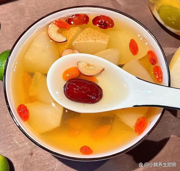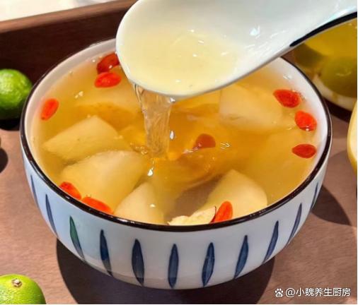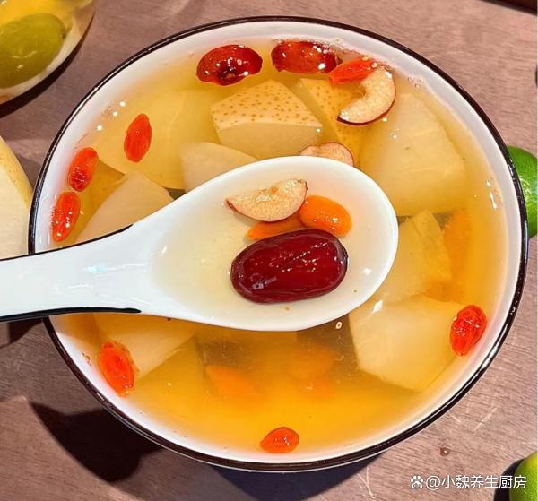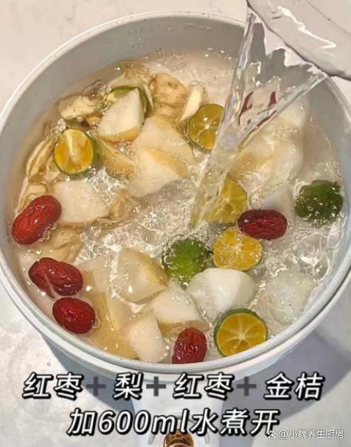 咳嗽最怕喝“這湯”,秋冬要常喝它,潤肺止咳,秋冬少生病!進入秋季的最后階段,冬天馬上要來臨了,季節交替的時候,氣溫會發生很大的改變,伴隨著冷空氣的來襲,氣溫開始降低,時而還有一陣陣的雨水,如果稍微不注意,就容易感冒了,影響到白天的工作。季節交替的時候,不僅僅要注意增添衣物,飲食上要注意調整,為家里人制作一款暖和和的湯品,對腸道很有利,幫助增強身體的免疫力。今天為網友們推薦一款止咳甜湯——雪梨金桔百合枸杞湯,主要選用金桔,雪梨,百合和紅棗制作而成,湯汁甘甜,喝起來暖和和的,趕快給家里人做一做。秋冬轉涼,無論多忙,常給家人喝這湯,營養全面,增強抵抗力。  【雪梨金桔百合枸杞湯的正確做法】 食材明細:選購兩個雪梨(雪梨是水分很足的水果,一年四季都可以吃到,雪梨吃起來非常甘甜,水分非常足,生吃不如煮熟后吃,營養價值更高,對嗓子有好處,為冬天儲備能量,讓你冬天少生病),純凈水少許,150克金桔(金桔是熱門的蔬果,金桔是咳嗽的“克星”,煮熟后食療價值翻倍),冰糖25克(可以選擇老冰糖),若干個紅棗,干百合35克,溫水少許,枸杞子20克左右,其他。