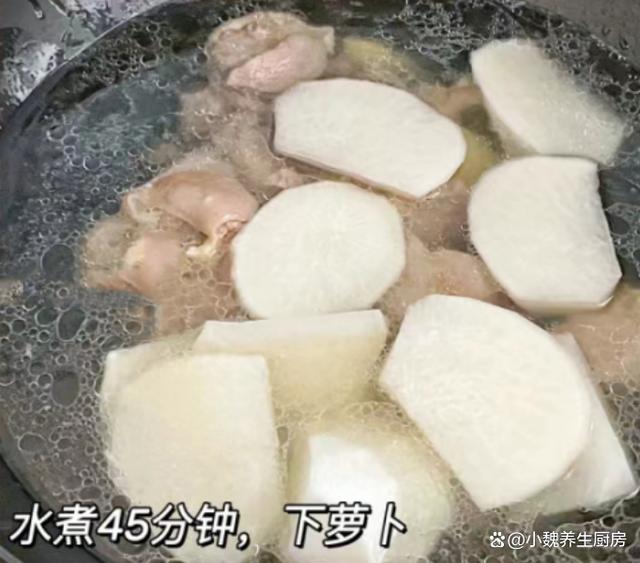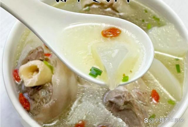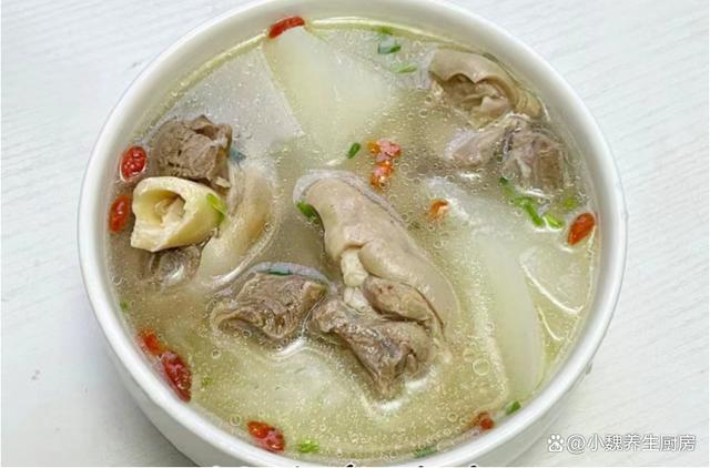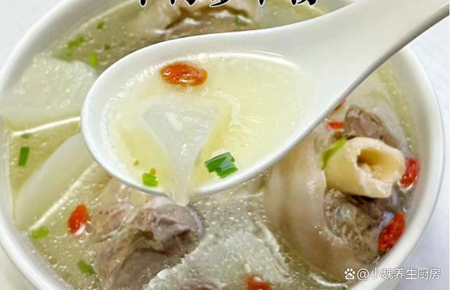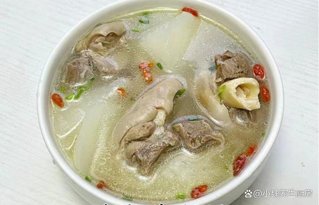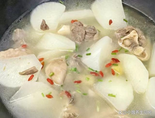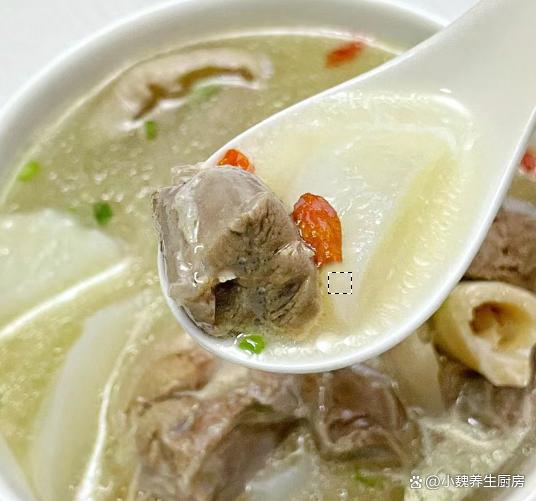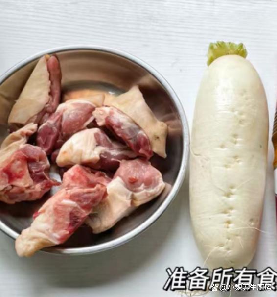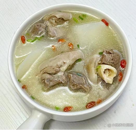 到了10月份末尾,剛剛度過(guò)了霜降節(jié)氣,馬上要迎來(lái)冬天,現(xiàn)在還處于季節(jié)交替的時(shí)候,秋天天氣干燥,氣溫開(kāi)始慢慢降低,身體非常慵懶,感覺(jué)有氣無(wú)力的。最近冷空氣來(lái)襲,氣候特別干燥,嗓子容易不舒服,我們要照顧好自己身體,平常可以多喝一些清甜的羹湯,幫助去除上火,補(bǔ)充能量,增強(qiáng)免疫力。今天準(zhǔn)備用白蘿卜和羊肉制作一款家常湯品——白蘿卜羊肉湯,每周喝2次,湯汁鮮美滋補(bǔ),別不懂吃。天冷了,無(wú)論多忙,常給家人喝這湯,暖胃健脾,補(bǔ)足營(yíng)養(yǎng)少生病!  【白蘿卜羊肉湯的具體做法】 準(zhǔn)備一些食材:選購(gòu)新鮮白蘿卜350克(白蘿卜是一種口感清甜的蘿卜,營(yíng)養(yǎng)價(jià)值不輸胡蘿卜,白蘿卜是秋冬之后最后歡迎的蔬菜,價(jià)格十分便宜,拿來(lái)煲湯是上佳選擇),選購(gòu)新鮮羊肉300克(或者選擇羊排或牛肉,搭配蘿卜燉湯非常滋補(bǔ)),香蔥若干根,香菜幾根,少許料酒,枸杞子12克左右,少許冷水,食鹽若干,陳皮幾片,半勺白胡椒粉,其他佐料。
