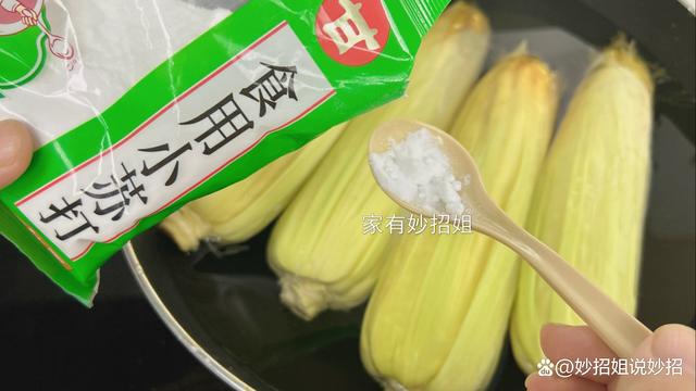食鹽加好,再倒入一點點的小蘇打。之所以加入小蘇打,是因為玉米中含有一種叫尼克酸的營養物質,而這種物質很難被人體吸收,而小蘇打可以很好的將玉米里面的尼克酸激發出來,使我們更好的吸收。