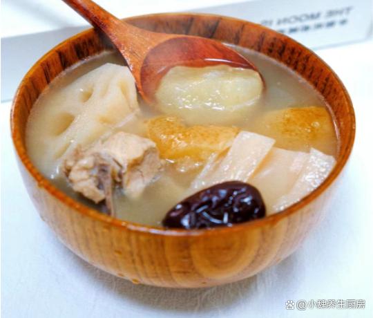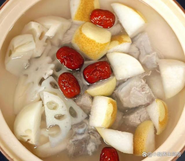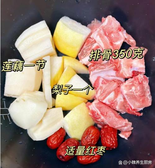 進入深秋,正處于十月尾聲,秋季要結束了,感覺還有一點舍不得,因為夏季太炎熱,冷天就太冷了,臉頰被凍得通紅,手腳出現著涼,身體十分虛弱無力,抵抗力很差。秋冬交替的時候,我們需要適當地進補,多喝一些暖和和的羹湯,比如說這款蓮藕雪梨燉排骨湯,主要選用新鮮蓮藕,雪梨和排骨煲制而成,湯品特別鮮美,營養更好消化和吸收,內行人每周都喝它。許多人還不會制作這款蓮藕雪梨燉排骨湯,到底應該如何烹飪呢?仔細瞧一瞧哦。秋冬交替,有錢沒錢,常給家人喝這湯,暖胃驅寒,舒服度過冬天。  【蓮藕雪梨燉排骨湯的詳細做法】 食材明細:選購蓮藕幾節(蓮藕是湖北地區盛產的蔬菜,被稱為“水下人參”,蓮藕是秋冬用來煲湯的材料,蓮藕燉湯非常甘甜,搭配豬蹄和豬骨是絕配),挑選排骨350克左右(排骨是豬骨的種類之一,排骨雖然好吃,但是一定要去腥處理干凈),雪梨1-2個,面粉少許,冷水和溫水足量,新疆紅棗幾個,老姜少許,余甘果幾個,生姜15克左右,一丟丟白胡椒粉,食鹽若干,其他佐料。 正確做法: 1:提前準備好雪梨,蓮藕,排骨和其他食材,雪梨外皮非常臟,雪梨放在大一些的器皿里,加上食鹽兩勺,浸泡半個小時,用手反復搓洗干凈,清理掉梨子外皮的有害成分。2:雪梨從中間破開,去掉雪梨果核,切成一些滾刀塊,沖洗掉表面的灰塵,余甘果用鹽水浸泡,洗凈切一些口子,控干水分備用。 3:將幾節蓮藕清洗掉表面泥土,用工具去掉藕皮和藕節,洗凈切成滾刀塊,蓮藕非常容易氧化,蓮藕可以用鹽水浸泡,最后撈出備用。4:提前把排骨剁成塊,排骨塊放在器皿里,加上少許面粉,面粉有很強的吸附性,用清水沖洗干凈,反復沖洗幾次,直到水變得清澈為止。 5:生姜切成若干片狀,香蔥洗凈切成小段,鍋中加上適量冷水,倒入洗凈的排骨塊,放入蔥段和姜片,燜煮幾分鐘,去掉排骨的血腥味。 6:砂鍋清洗干凈,鍋中依次放入處理好的排骨,蓮藕塊,雪梨塊,紅棗和余甘果,放入若干片生姜,記得一定要加純凈水,蓋上鍋蓋大火燜煮。 7:中途撇去一層浮沫,調到小火燜煮50分鐘左右,一定要掌握燉湯的火候,出鍋前調入食鹽,白胡椒粉和其他調味品,將湯汁煮至入味,嘗一嘗咸淡,根據情況添加少許食鹽,撒上蔥花出鍋,關火出鍋,這道蓮藕雪梨燉排骨湯就可以開吃了。 蓮藕雪梨燉排骨湯是秋冬去燥的鮮湯,天氣慢慢變冷了,尤其是孩子和老年人,抵抗力很差,特別容易生病,需要多補充能量,滋補身體,讓氣色更足,暖胃健脾,對嗓子有好處。 小伙伴們,你們是否掌握這款鮮湯的具體做法?(全文配圖都來自網絡)