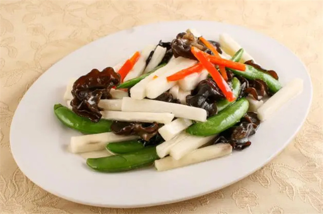 一、甜豆木耳炒山藥 所需食材: 甜豆250克、木耳5-6朵、山藥200克、蔥末少許、花椒20粒左右 做法: 1. 先將木耳泡發后洗凈,將甜豆除去老筋并洗凈備用。(www.Ws46.com) 2. 用橡膠手套將山藥去皮,沖洗掉黏液,切成薄片后迅速泡在涼水或淡鹽水中,以防止氧化。 3. 將甜豆和山藥在滾水中焯燙約一分鐘,撈出后迅速浸入冷水以保持甜豆的翠綠顏色。 4. 在炒鍋中倒入橄欖油或色拉油,燒熱后加入蔥末和花椒炒香,加入剛剛焯燙的山藥和甜豆,翻炒2分鐘左右,加入木耳繼續翻炒,最后加入香菇精和鹽,均勻翻炒后即可出鍋。 二、清炒甜豆 所需食材: 甜豆、香油兩大勺、醬油兩小勺、鹽適量 做法: 1. 用鹽焯一下甜豆,將其放入篩子中涼卻。 2. 一旦甜豆不再燙手,去掉筋,切成兩半,放入碗中。 3. 將提前準備好的醬汁倒入甜豆碗中,攪拌均勻。