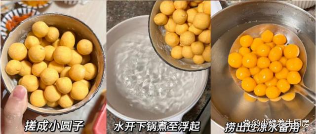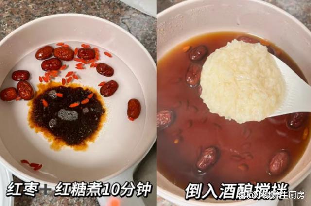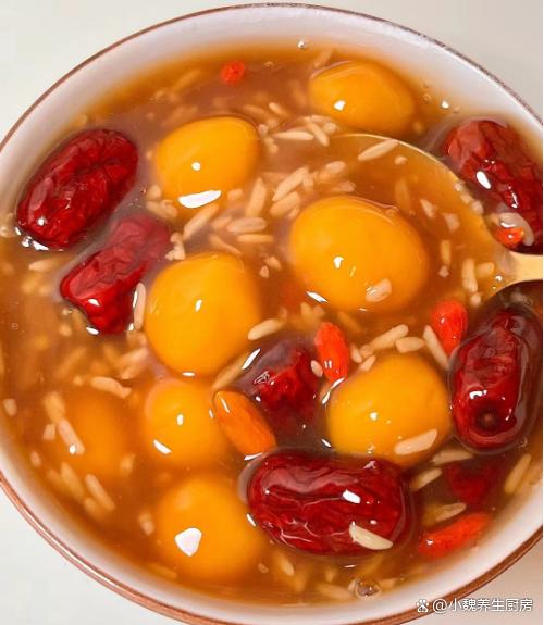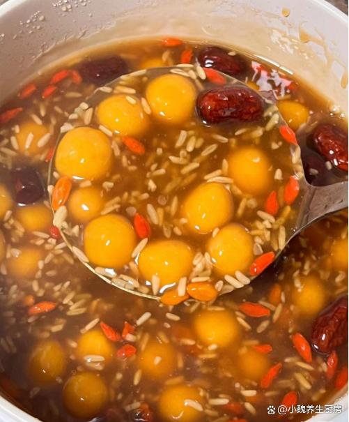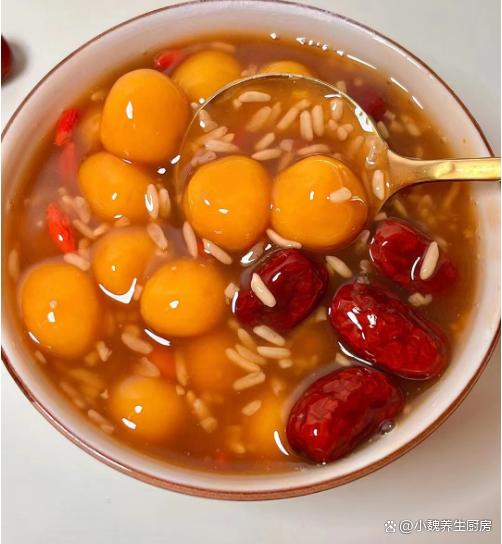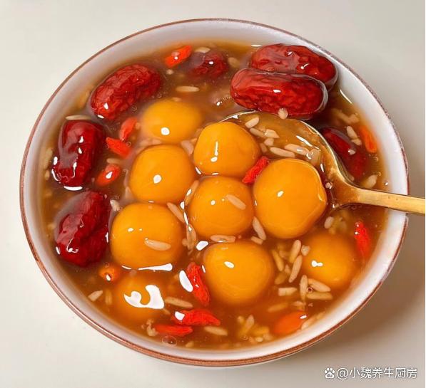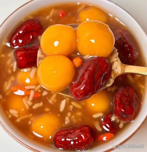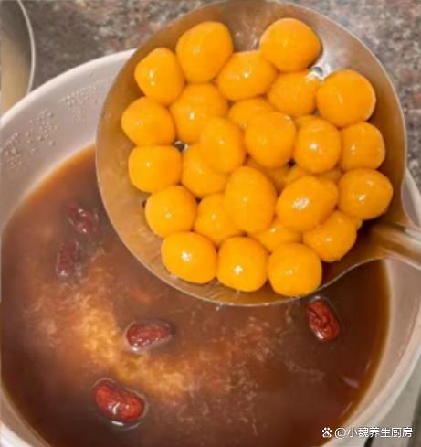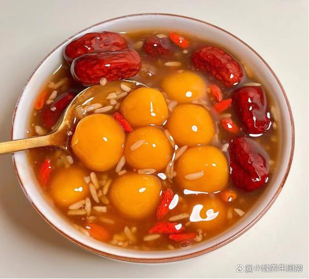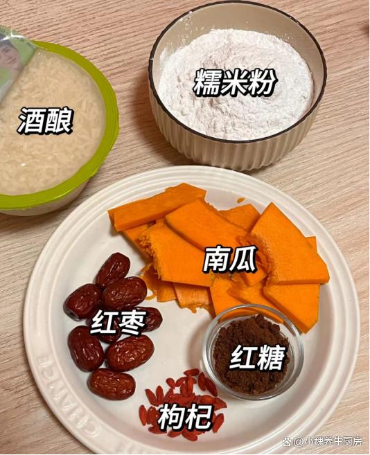 轉(zhuǎn)眼之間,現(xiàn)在來(lái)到了秋季的后半段,深秋來(lái)臨,現(xiàn)在處于秋冬過(guò)渡的極端,最近早上都是露水和霧氣,晚上溫度非常低,都要穿上厚一點(diǎn)的衣服,冷空氣不斷南下,加上時(shí)而有陣陣的秋風(fēng),臉部非常干燥,身體十分虛弱無(wú)力,臉色很蒼白,四肢沒(méi)有力氣。俗話說(shuō)“春夏補(bǔ)陽(yáng),秋冬養(yǎng)陰”,秋冬是進(jìn)補(bǔ)的好時(shí)機(jī),不僅僅要多吃各種肉類,還要多喝暖和和的食材,這樣可以補(bǔ)充能量,增強(qiáng)身體的免疫力。我們家為一家三口,基本上早餐都在家吃飯,早餐除了吃面條以外,孩子最愛(ài)這道美食——南瓜酒釀小丸子,小丸子口感軟糯,湯汁甘甜,喝起來(lái)很舒服。許多人沒(méi)有還不會(huì)制作這款南瓜酒釀小丸子,到底應(yīng)該如何烹飪呢?跟著小編來(lái)聊一聊吧。深秋之后,女性要多吃它,暖胃驅(qū)寒,補(bǔ)氣養(yǎng)血,臉色更紅潤(rùn)!  【南瓜酒釀小丸子的正確做法】 食材清單:選購(gòu)400克老南瓜(南瓜是一種色澤金黃的瓜類,色澤金黃,口感非常軟糯,植物纖維含量高,能夠促進(jìn)腸道的蠕動(dòng)),選購(gòu)若干個(gè)優(yōu)質(zhì)紅棗,糯米粉350克左右(糯米粉是日常生活常見(jiàn)的食材,可以做成各種美食,口感糯嘰嘰,給人很強(qiáng)的飽腹感),少許白糖,紅糖幾塊,冷水和溫水少許,枸杞子12克左右,酒釀45克左右,其他。