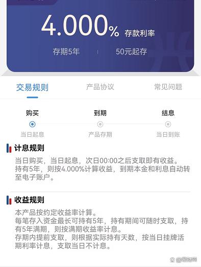 上方為,某民營銀行的5年期存款,存款利率就達到了4%,50萬起存、可提前取出,就是一款普通的定期存款。 而且這樣的存款也不僅在民營銀行里才有,還有一些中小銀行也可能會有。
