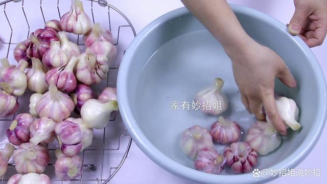 大蒜浸泡好后,我們把它撈出來,放在通風的地方將表面的水分晾干。注意,盡量多晾曬一會兒,把大蒜表面的水分充分晾干。