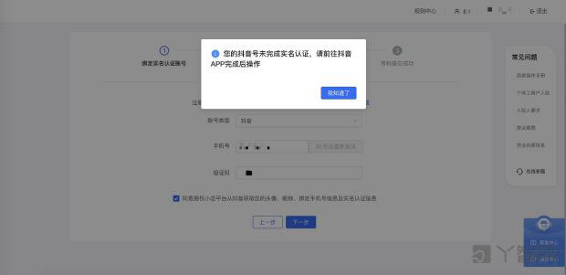 2)確認(rèn)抖音認(rèn)證信息 賬號類型選擇:僅支持實名認(rèn)證的抖音賬號