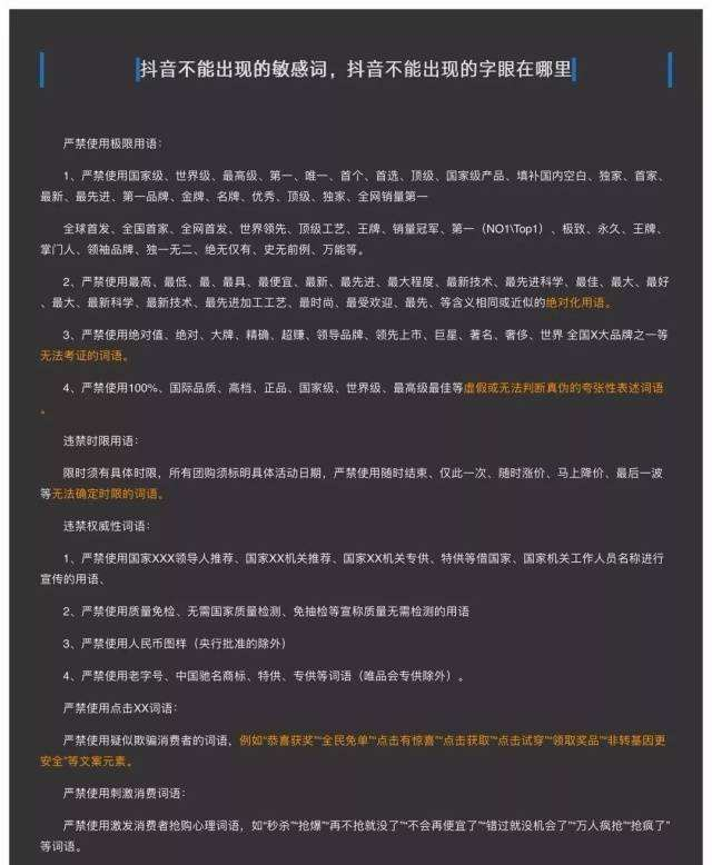 在網絡上做營銷推廣的伙伴都知道,平臺有一定的規范各要求,敏感詞和違禁詞是嚴打的。那么在抖音營銷過程中如何避免抖音違禁詞和敏感詞?