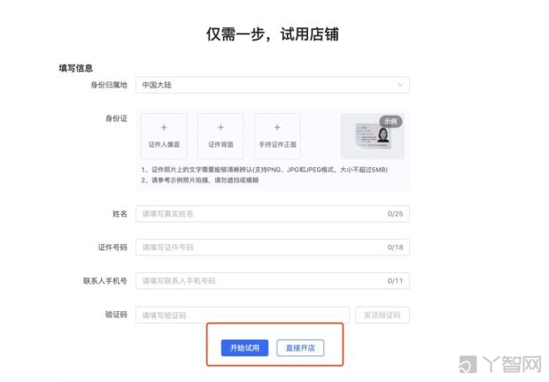使用電腦瀏覽器(建議使用谷歌瀏覽器)訪問(wèn)網(wǎng)址:[商家后臺(tái)](https://fxg.jinritemai.com/),可以選擇頭條賬號(hào)、抖音賬號(hào)、火山賬號(hào)任意一種渠道進(jìn)行注冊(cè)或登錄。 提示 1)您注冊(cè)成功后,登陸方式無(wú)法自助修改,請(qǐng)選擇最穩(wěn)妥保管登陸賬號(hào); 2)渠道App上的賬號(hào)僅用于注冊(cè)和登錄陸使用,小店店鋪與渠道號(hào)的關(guān)聯(lián),需要小店店鋪營(yíng)業(yè)后到店鋪的渠道綁定中進(jìn)行綁定; 3)請(qǐng)勿隨意注銷渠道App上的賬號(hào),注銷后,您將無(wú)法登陸小店。 1)試用店鋪 # 商家可以填寫(xiě)任意身份證件的基本信息,開(kāi)始試用店鋪。以試用身份,查看店鋪功能。或者不提交試用信息直接選擇開(kāi)店