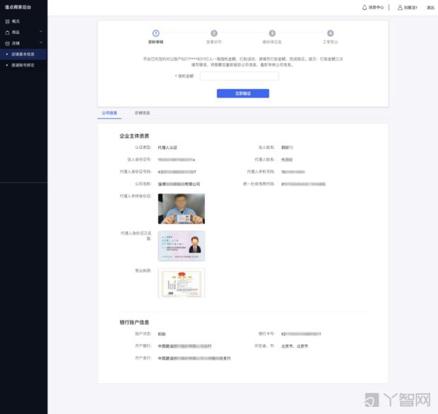 5)平臺(tái)審核信息 # 提交完成,點(diǎn)擊進(jìn)入店鋪,確認(rèn)進(jìn)入資料審核。