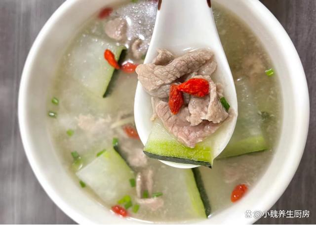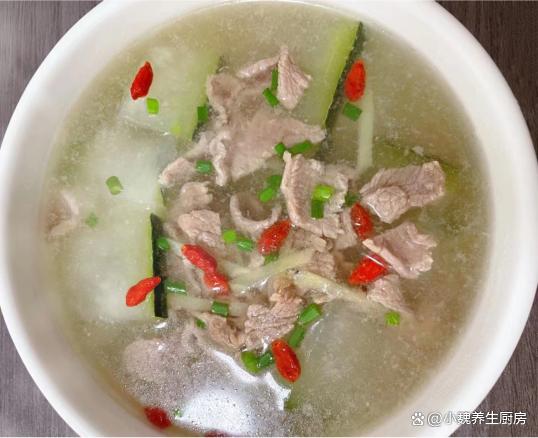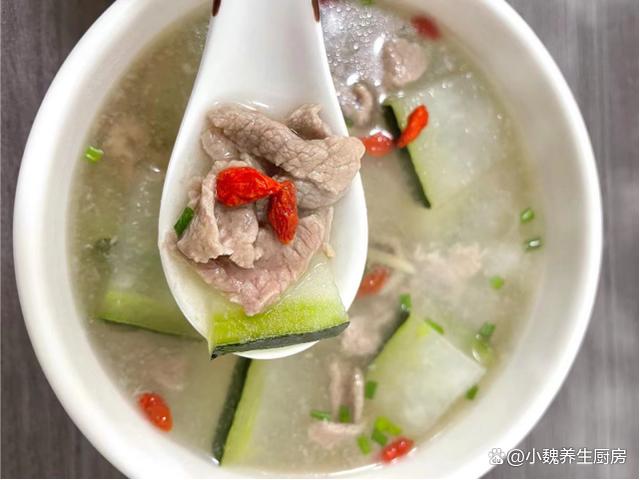 貧血最怕常喝“這湯”,平常要多喝它,暖胃驅寒,補血補氣,增強免疫。轉眼就到了10月中旬,對于很多年輕人,9月和10月是最忙碌的日子,最近一直都在加班,午餐都是吃外賣,如果家里孩子在家,外賣肯定滿足不了它。進入寒冷的秋天,溫度持續(xù)下降,冷空氣南移,氣候十分干燥,身體總覺得氣血不足,手腳也沒有力氣,想要今年秋冬季節(jié)過得安穩(wěn),一定要多喝鮮美的湯品,比如說排骨蓮藕湯,烏雞湯等等。今天推薦一款我們家常喝的牛肉湯——冬瓜牛肉枸杞湯,牛肉雖然貴一點,但是一定要多吃,搭配冬瓜和枸杞子煮一鍋,食療效果很不錯,趕快試一試哦。  【冬瓜牛肉枸杞湯的正確做法】 食材清單:選購新鮮牛肉里脊300克左右(牛肉里脊是最受年輕人喜歡的肉類,可以用來涮火鍋,還可以炒牛肉絲或煮牛肉湯,牛肉的營養(yǎng)價值豐富,老少皆宜,秋冬一定要常吃它),選購250克老冬瓜(冬瓜是秋季收獲的蔬菜,農村家家戶戶都種植南瓜和冬瓜,根本都吃不完,冬瓜的口感清淡解膩,拿來煲湯很合適),少許食用油和豬油,若干根小蔥,生姜片少許,冷水兩碗,枸杞子12克左右,紅薯淀粉少許,生抽和蠔油少許,食鹽和白胡椒粉若干,其他。