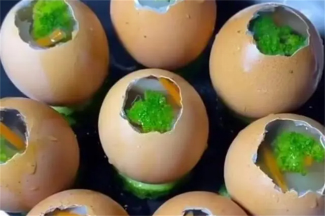 二、制作水晶雞蛋的步驟: 1.將豬皮煮開,去除油脂和毛,切成條狀備用。 2.加入適量的鹽、蔥姜和大料,加入三倍清水,放入蒸鍋中蒸20分鐘。 3.掏出雞蛋的蛋黃和蛋清,將蛋殼保留備用。(www.ws46.coM) 4.將切好的豬皮和蒸好的豬皮水倒入容器中,加入西藍(lán)花、胡蘿卜和木耳(也可以加入其他你喜歡的食材)。 5.將容器放入冰箱靜置幾個(gè)小時(shí),直至凍結(jié)成水晶狀即可食用。 6.配上自制的蘸料,味道更加美妙。