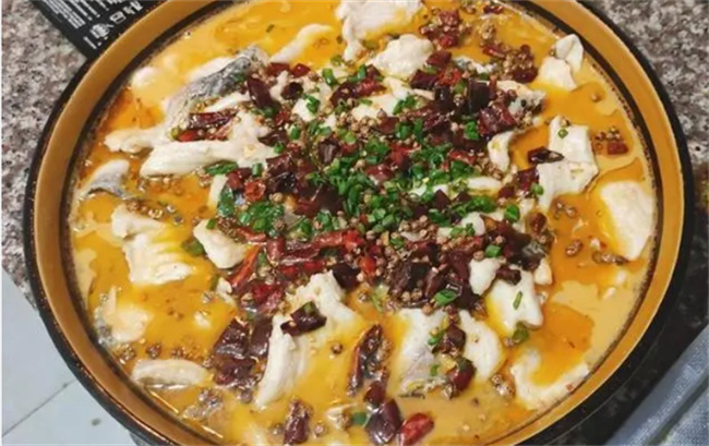 二、制作步驟: 1:處理魚片 將草魚洗凈,將魚肉切成片。盡可能地將魚骨上的所有肉都切成片,以確保充分利用。腌制魚片,加入鹽、料酒、少量蔥、姜和糖,攪拌均勻,直到魚肉略顯粘稠。腌制20分鐘,將蔥和姜取出。 2:準備炒料 準備炒料,將酸菜切小,將泡姜、泡椒切成蓉,將大蒜切成小塊。同時,準備20個干辣椒段、2棵小蔥切成蔥花,備用。 3:熬制魚湯 這一步或許有點特殊。在炒鍋內,加入少許食用油,加熱后加入所有魚骨和姜片,用大火煎至兩面微黃,加入水,燒開。將呈奶白色的魚湯倒出備用。 4:炒料 使用高效排風扇,這個步驟會產生較多油煙。在炒鍋內加入適量的食用油,當油開始冒煙時,加入酸菜、泡姜、泡椒蓉和蒜,全程使用大火翻炒,直至炒得略微干燥。如果感覺太干,可以加入少量料酒再翻炒一會。加入剛剛熬制好的奶白魚湯,繼續用大火煮5分鐘,將較干的材料撈到碗里,將魚湯留在鍋內備用。 5:滑魚片 將魚湯加熱,但保持中小火,不要使其沸騰。首先調味魚湯,加入適量的雞精、醋和少許糖,醋的用量可以根據個人口味來調整,不同的酸菜風味有所不同。緩慢地將魚片放入鍋中,待魚片變色后,蓋上鍋蓋。此時,湯汁會保持溫暖,不用擔心魚片是否熟透。 6:添加調味料和輔料 撒上一半蔥花在魚片上,在另一個鍋中燒熱食用油(多加一些),油熱后加入花椒,加入干辣椒段,攪拌均勻。將這份香辣的油澆在魚片上,再撒上剩余的蔥花。現在,可以品嘗這道美味,將其與米飯一起享用。