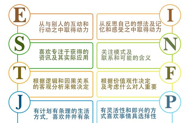 他們具有洞察力,是很好的觀察者,注意常規以外的任何事物,ENFP型的人好奇,他們更喜歡理解而不是判斷,他們相比于職業規劃更喜歡生涯規劃這個大概念,凡事一切可以有助于他們實現理想或促進他們實現理想的事情他們都喜歡去做。 16型人格 邁爾斯-布里格斯類型指標(Myers–Briggs Type Indicator,MBTI)是由美國作家伊莎貝爾·布里格斯·邁爾斯和她的母親凱瑟琳·庫克·布里格斯共同制定的一種人格類型理論模型,該指標以瑞士心理學家卡爾·榮格劃分的8種心理類型為基礎,從而將人格的心理類型理論付諸實踐,經過二十多年的研究后,編制成了邁爾斯-布里格斯類型指標。