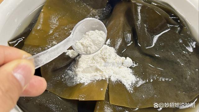 下面再來給大家分享一個(gè)清潔海帶的方法,在海帶的表面有著很多的泥沙,清潔起來費(fèi)時(shí)又費(fèi)力的,還容易清洗不干凈。其實(shí)我們只要往里面倒入一勺面粉和一勺食鹽,然后再用手不停的抓洗就可以了。