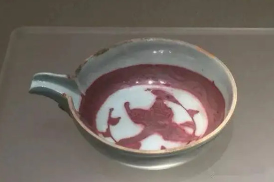 呈色,元代的釉里紅以氧化銅為呈色劑繪畫在瓷器的胚胎上再蓋上一層透明石灰質青白釉,通過高溫燒制而成,呈色的主要色調是紅偏紫黑色,鮮紅顏色的瓷器很少;造型,元代釉里紅造型常見的有玉壺春瓶、大小罐類物品等。 1、呈色