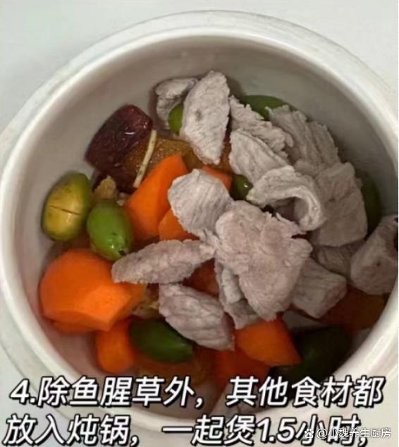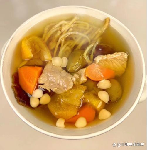 嗓子疼最怕喝“這碗湯”,秋天要常喝它,潤喉清咽,增強抵抗力。進入深秋,金秋十月,寒露節氣來臨,正處于今年秋季的后期,氣溫會越來越冷,雨水開始增多,早晚溫差特別大,我們的身體處于免疫力低下的時候,很多疾病會入侵身體。寒露節氣之后,要根據節氣的變化,少吃太辛辣的食材,多給家里人煲湯喝,比如說這款魚腥草青橄欖胡蘿卜瘦肉湯,主要采用胡蘿卜,魚腥草,青橄欖和瘦肉制作而成,簡單燉一鍋,營養很全面,不懂吃可惜了。寒露節氣,建議給家人喝“這湯”,滋補暖胃去燥,增強抵抗力。  【魚腥草青橄欖胡蘿卜瘦肉湯的正確做法】 食材明細:選購青橄欖120克左右(青橄欖是兩廣地區的稀罕水果,吃起來酸甜多汁,營養價值很高,其實還可以拿來煲湯喝),魚腥草80克(魚腥草是四川人的最愛,氣味非常難聞,可以用來涼拌,還可以用來燉湯,具有清熱解毒,瀉火排毒的效用),選購精瘦肉280克,南北杏30克左右,胡蘿卜150克左右,桔餅一個,若干個椰棗,陳皮12克,純凈水少許,料酒少許,生姜半塊,食鹽和胡椒粉少許,其他。 正確制作順序: 步驟1:提前選購好魚腥草,胡蘿卜,青橄欖和其他食材,先把魚腥草的根須去掉,用清水反復洗干凈,控干水分備用。 步驟2:先把胡蘿卜外皮的臟東西洗凈,個人建議去皮切塊,陳皮用溫水泡發,桔餅洗凈去掉糖霜,切成塊備用。 步驟3:青橄欖用鹽水浸泡,生姜切成若干片狀,南北杏用清水洗凈,瘦肉反復清洗干凈,切成若干小塊。 步驟4:起鍋放入一些瘦肉塊,加上少許料酒,放入姜片,加上足量的冷水,把瘦肉焯燙處理,然后用溫水沖洗幾次,準備好一些燉湯的食材,開始制作這道魚腥草青橄欖胡蘿卜瘦肉湯吧。 步驟5:準備好湯鍋,鍋中分別放入魚腥草,胡蘿卜,青橄欖,陳皮,南北杏和桔餅,放入焯水好的瘦肉,加上適量冷水。步驟6:大火轉小火煲一個半小時,中途可以撇掉一些油膩物質,加上一丟丟食鹽,胡椒粉半勺,燜煮至入味,出鍋,這道魚腥草青橄欖胡蘿卜瘦肉湯就制作完成了。 魚腥草青橄欖胡蘿卜瘦肉湯是一款秋冬養生的家常湯品,食材非常常見,簡單燉一鍋,發揮食材的最大營養價值,湯汁鮮美,補足能量,養肝護眼,清熱解毒,對身體有許多好處,早食早受益。 小伙伴們,你們是否掌握這道魚腥草青橄欖胡蘿卜瘦肉湯的正確做法嗎?(上述配圖都出自網絡)