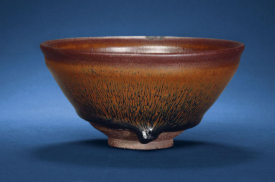 兔毫盞因為釉面紋理絲絲柔長,形如兔毫得名,是建盞中最為典型,也是產量最大的品種。兔毫盞根據其特征的不同,被細分為金兔毫、銀兔毫、藍兔毫等種類。 3、曜變盞
