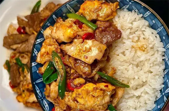 二、香辣小炒菜 主要食材: 肉片、雞蛋、蔥段、青紅辣椒、蠔油、生抽、小米辣、老干媽、蒜末。 這是一道香辣小炒菜,非常下飯。它的特點是食材搭配非常靈活,肉片可以用雞胗、鴨胗等代替,雞蛋也可以換成豆腐片等等。無論如何變化,它都是一道香氣四溢的佳肴。 具體做法: 1. 先在鍋中熱油中將雞蛋炒至切塊,撈出備用,保留雞蛋炒的底油。將肉片煎至兩面定型。 2. 加入蒜末、小米辣、1勺老干媽,炒出香味,將雞蛋倒入鍋中,再加入1勺生抽、1勺蠔油,適量的黑胡椒粉和鹽。 3. 翻炒幾輪后,加入青辣椒和蔥段,關(guān)火后繼續(xù)翻炒,直到蔥段和青辣椒微微斷生。裝盤,即可享用。這道菜的做法簡單,食材方便,適合大人和小孩。