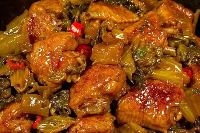 一、酸菜燜雞翅 主要食材: 雞翅、酸菜、姜絲、老抽、生抽、料酒、蠔油、白糖、小米辣、蔥花。 這道酸菜燜雞翅具有雞肉爽滑入味和酸菜可口下飯的特點,而且湯汁和酸菜的搭配讓人連續(xù)吃兩碗米飯都不覺得負(fù)擔(dān)。 具體做法: 1. 先將雞翅切成半塊,在鍋中熱油中將雞翅和姜絲煎至兩面金黃,煎至出香味。加入1勺生抽、1勺老抽、半勺料酒,一同翻炒至香味四溢。 2. 加入咸酸菜,翻炒去掉多余的水分,加入1勺蠔油和少許白糖,再倒入足夠淹沒食材的清水。大火煮開3分鐘后,轉(zhuǎn)至中火燜煮20-30分鐘。 3. 當(dāng)湯汁逐漸收干時,加入小米辣和蔥花,關(guān)火后繼續(xù)翻炒,直到蔥花變軟,即可出鍋。如果酸菜太咸,可以提前用水沖洗幾次。這道酸菜燜雞翅不僅美味,湯汁極佳,非常下飯。