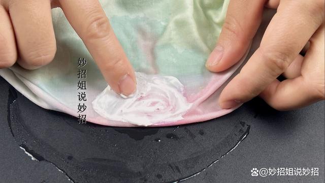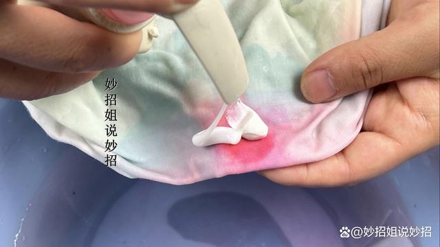 浸泡好,我們在血漬處擠上適量的洗潔精。洗潔精的去油能力可以幫助分解血液中的油脂。接著,再擠上一段牙膏,牙膏中含有的微粒可以幫助摩擦和去除污漬。最后,我們再加上一些洗發水,洗發水的清潔成分能夠進一步幫助分解血漬。