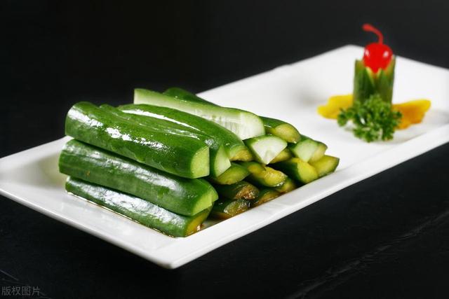 生吃黃瓜 將黃瓜洗凈后切成小段或者薄片,可以直接生吃。在炎熱的夏季,生吃黃瓜可以起到很好的消暑解渴作用,而且能夠幫助減輕煩躁情緒。此外,生吃黃瓜還可以有效地促進口腔分泌唾液,起到美容養顏的作用。 熟吃黃瓜