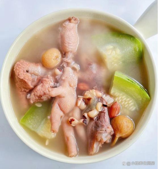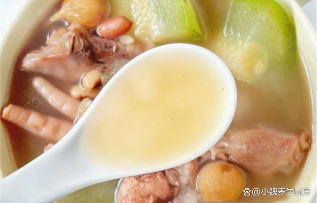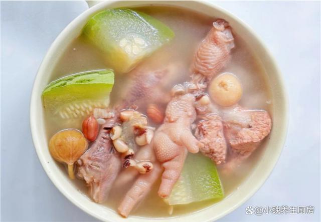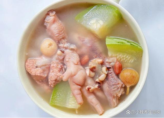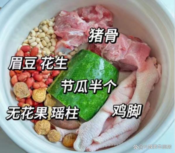 十月,是一個充滿變化和期待的季節,天氣慢慢開始降溫了,我們要開始穿上厚衣服,準備迎接秋冬季節的到來。而此時,一碗湯則成為人們不可或缺的能量來源,為身體提供足夠的熱量和營養,讓我們安然度過這個寒冷的季節。由于天氣變冷,我們身體的能量消耗加快,秋冬需要儲備很營養,許多長輩們要求我們適當“進補”,南方人喜歡煲湯來補身體,因為營養更容易消化,還可以增強人體的免疫力。今天分享一款南方人常喝的湯品——節瓜花生雞爪豬骨湯,這湯鮮掉眉毛,不僅可以溫暖身體,還可以為身體的健康打下堅實的基礎。“十月一碗湯,秋冬不會慌”,平常多喝這湯,補充營養順利過秋冬。  【節瓜花生雞爪豬骨湯的正確做法】 準備一些食材:選購節瓜(節瓜是一種很受歡迎的菜瓜,瓜肉含有大量的維生素和植物纖維,適合用來燉湯,低脂又健康,喝起來很鮮甜),雞爪100克左右(雞爪又叫鳳爪,可以做成鹵雞爪或煲湯,雞爪湯非常滋補,秋季一定要多喝它),花生米少許,無花果幾個,瑤柱45克左右,溫水少許,溫水1200毫升,新鮮豬骨250克左右,眉豆35克左右,若干根香蔥,料酒若干,蜜棗或紅棗幾個,半勺胡椒粉,食鹽和胡椒粉少許,其他。