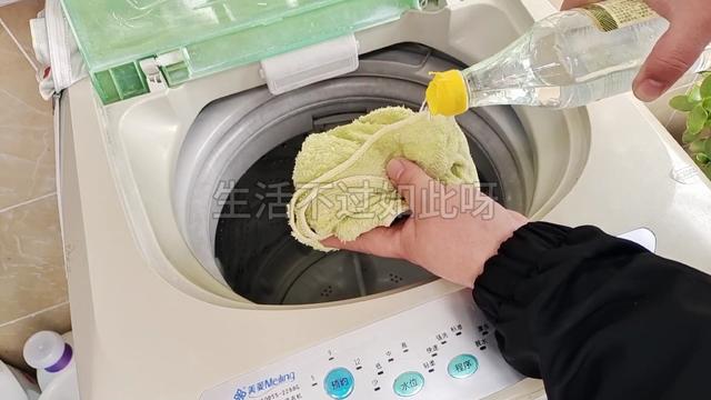 接著,開啟洗衣機(jī)的甩干模式,將毛巾上面的白醋,甩到洗衣機(jī)四周,靜置半個(gè)小時(shí)。