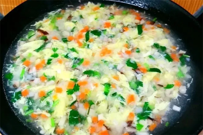 三、制作步驟: 1. 準備食材。將香菇、胡蘿卜、小油菜切成小丁備用。 2. 山藥去皮洗凈,拍碎并剁成細小的顆粒。 3. 取一個鍋,加熱食用油,熱油后加入蔥碎炒香,加入胡蘿卜和香菇,翻炒均勻。 4. 在炒好的蔬菜中加入適量的清水,放入雞精、鹽和白胡椒粉,進行調味。 5. 當水燒開后,倒入山藥泥,攪拌均勻,煮1-2分鐘左右。 6. 用勺子撇去湯面上的浮沫,然后在湯中打入一個雞蛋。 7. 撒上小油菜碎,再次攪拌均勻。 8. 山藥芙蓉湯就做好了,它具有香滑濃稠的口感,既可以作為早餐也可以作為晚餐食用,不僅飽腹感好,而且營養豐富。 這道湯羹里有雞蛋、青菜、山藥豐富的淀粉,提供了多種維生素和礦物質,還有豐富的膳食纖維,有助于促進腸道健康。早上煮上一大鍋山藥芙蓉湯,全家人的早餐問題就迎刃而解了。在寒冷的冬天早上享用一碗溫暖的山藥芙蓉湯,不僅可以溫暖全身,還能提神醒腦,讓您精力充沛地度過一天。