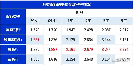 農(nóng)商行的存款利率比國有銀行高嗎?對于商業(yè)銀行來說,存款利率肯定是越低越好。存款利率越低,銀行的攬儲成本也越低,利差也就能越高。 大銀行因為客戶群體廣,議價能力強,所以通常會把存款利率壓得比較低,而小銀行在各方面都難競爭的過大銀行,就只能靠設(shè)置更高的存款利率來吸引儲蓄存錢了。 農(nóng)商行作為地方性銀行,在規(guī)模上肯定比不過全國性的國有銀行。哪怕是規(guī)模最小的國有銀行,也比最大的農(nóng)商行更大。那么,在存款利率上是否意味著農(nóng)商行更高呢? 首先,從整體的存款利率水平上看,農(nóng)商行的存款利率肯定要更高一些。下方為某段時期各類銀行的平均存款利率情況。(www.wS46.com)