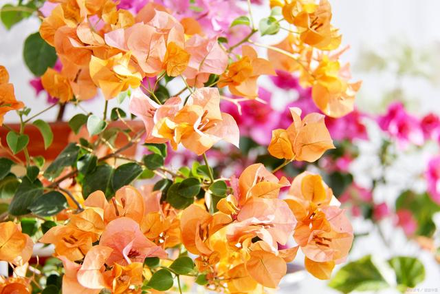 2. 黃蝶三角梅:這是一種花瓣邊緣呈黃色,中心為淡黃色的三角梅品種。黃蝶三角梅花型獨特,如同蝴蝶翩翩起舞,花期同樣較長,適合作為盆栽或庭院觀賞植物。 3. 黃金三角梅:這是一種花朵呈深黃色的三角梅品種,花期長,從春季一直持續(xù)到秋季。黃金三角梅的花朵數(shù)量多,且分枝性好,適合作為盆栽或庭院觀賞植物。 二、黃色三角梅的養(yǎng)護方法1. 光照:黃色三角梅喜歡充足的陽光,每天需要至少6小時的直射光照。充足的陽光有助于三角梅的生長和開花。在陽光不足的情況下,三角梅的花朵數(shù)量會減少,花色也會變得較淡。
